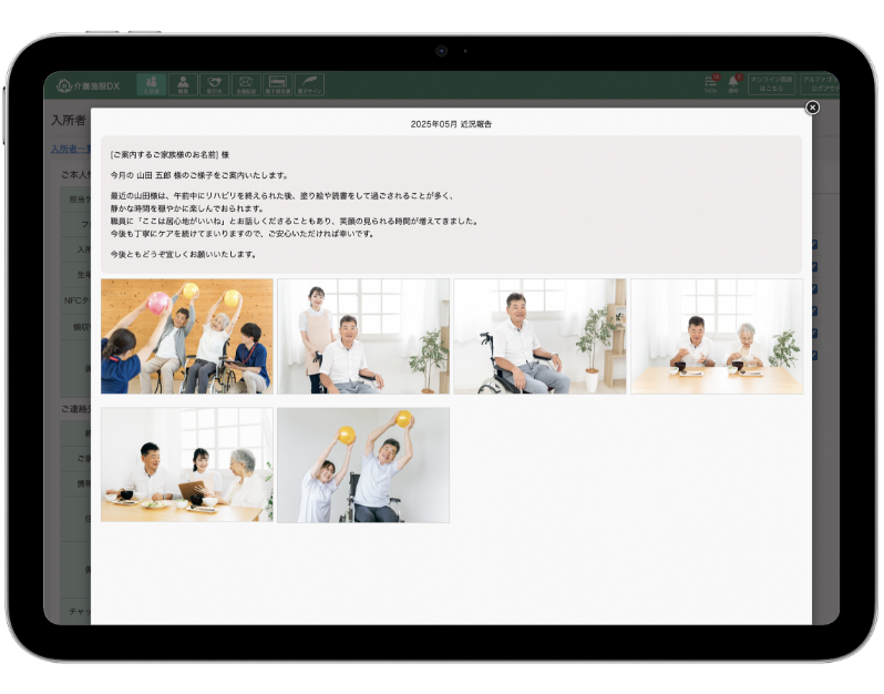 近況報告を作成、入所者のお写真と組み合