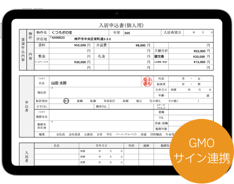 入居申込書や重要事項説明など、正式な書類には