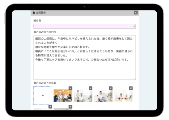 近況報告を作成、入所者のお写真と組み合