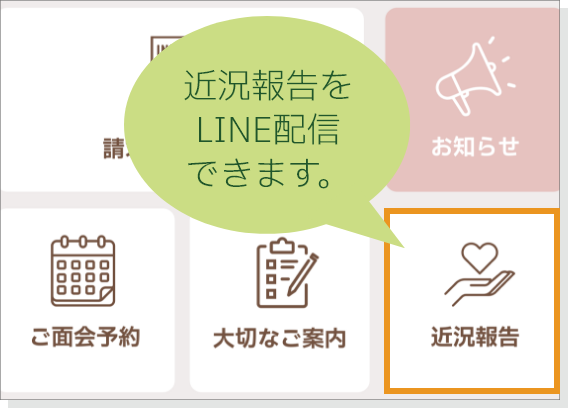 作成した近況報告をご家族にLINEで配信可能、